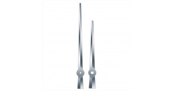 Комплект металлических стрелок серебряного цвета для механизмов Hermle. Стрелки имеют V-образный ..