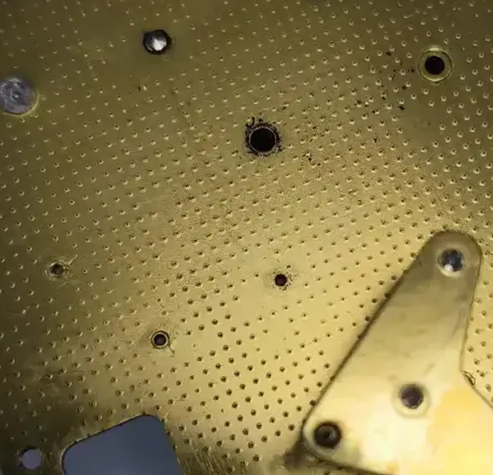 Внутри видна грязь вокруг отверстий в платинах и на деталях.