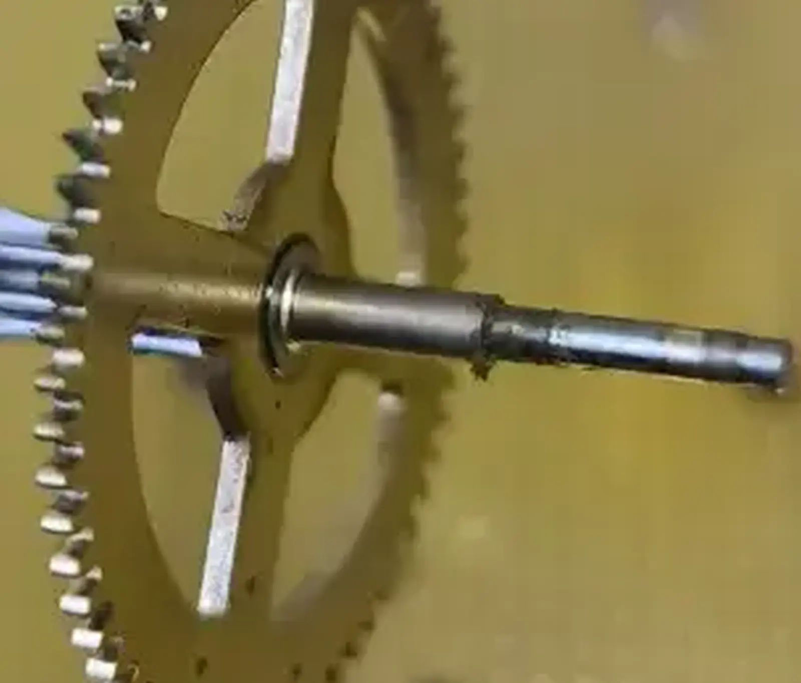 Под циферблатом на деталях остались отметки взаимного расположения деталей.